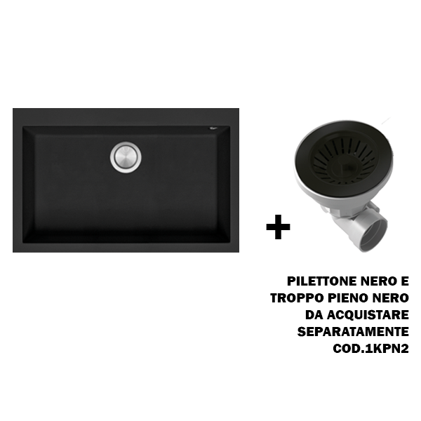 PLUS: PILETTONE, COPRIPILETTONE IN ACCIAIO INOX E TROPPO PIENO. POSSIBILITÀ DI AVERE PILETTONE E TROPPO PIENO COLORE NERO COD.1KPN2 (LISTINO €49)