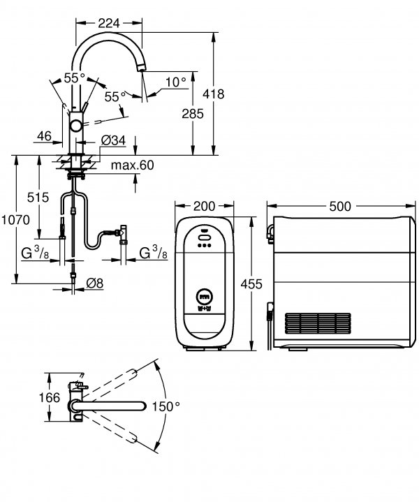PLUS: PULSANTE A PRESSIONE PER 3 TIPOLOGIE DI ACQUA FRESCA E FILTRATA (ACQUA NATURALE FRESCA, ACQUA LEGGERMENTE FRIZZANTE E FRIZZANTE FREDDA)