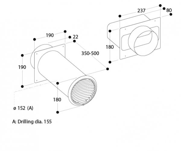 Siemens SCARICO A PARETE CON TUBO TELESC. 150 DIAM., ADATTATORE TUBO TONDO, VALVOLA DI NON RITORNO